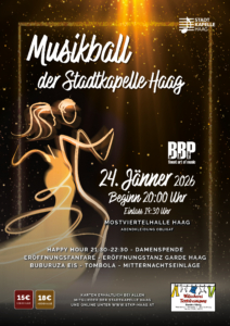 Erleben Sie einen unvergesslichen Ballabend in festlicher Atmosphäre – die Stadtkapelle Haag freut sich auf Ihr Kommen!